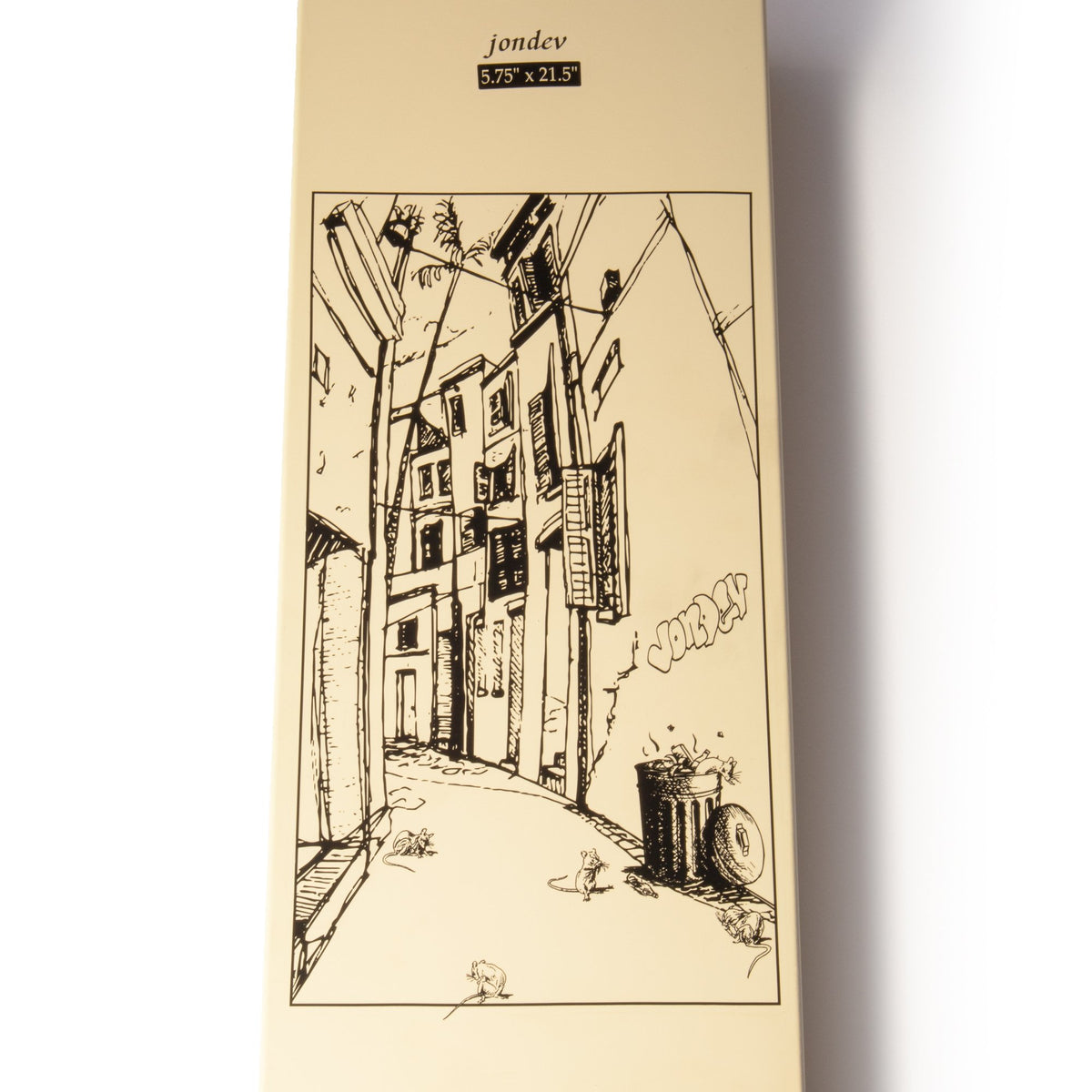 Le graphisme de mon deck est un peu plus lumineux cette fois-ci. Le graphisme du haut est inspiré d'un chapeau trouvé chez Salval il y a quelque temps. Une sorte de broderie de couverture de grand-mère. Le graphisme du bas représente une allée, car les meilleurs endroits sont toujours dans la coupe. Il y a des rats éparpillés un peu partout, car au fil des ans, je ressemble de plus en plus à l'un d'eux. Petite croûte de classe.
