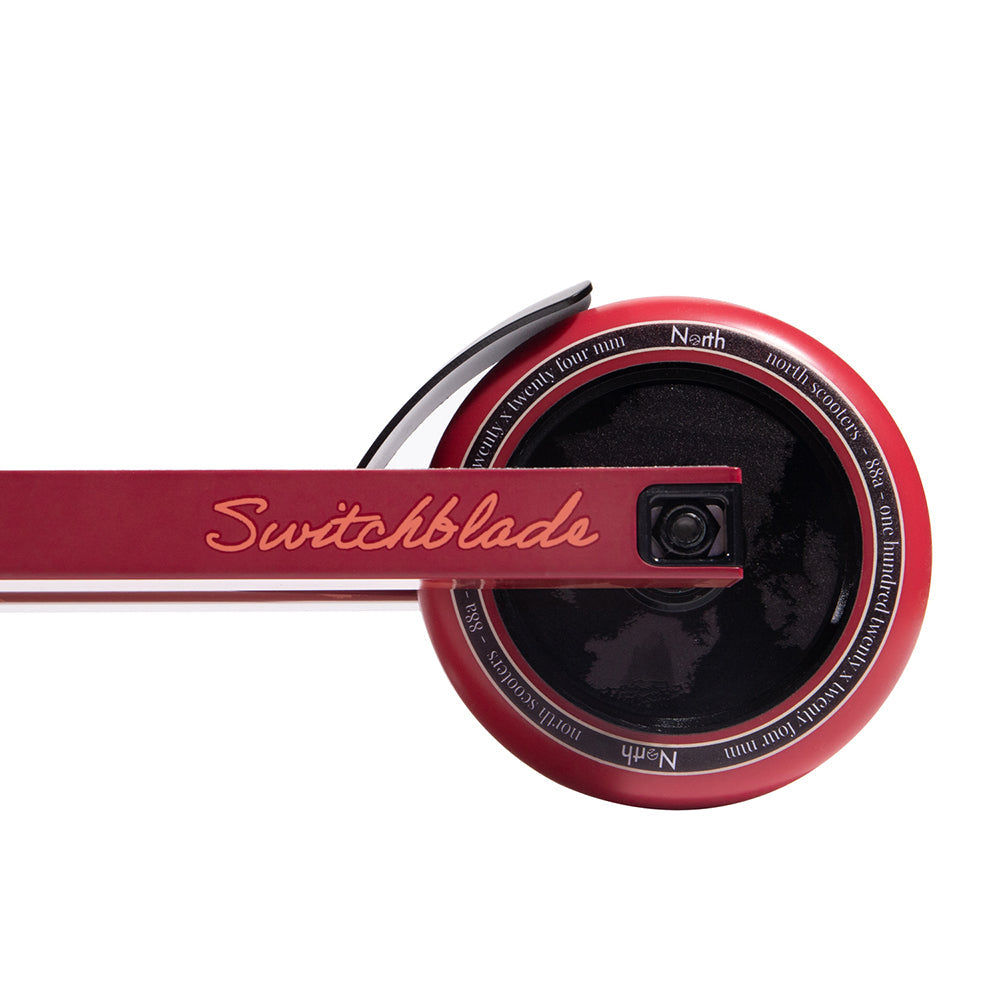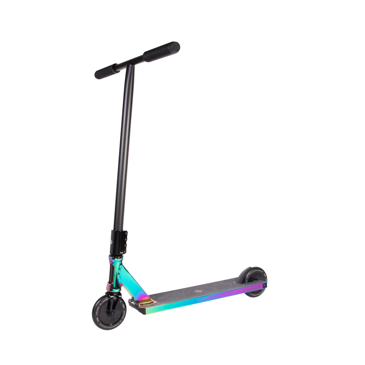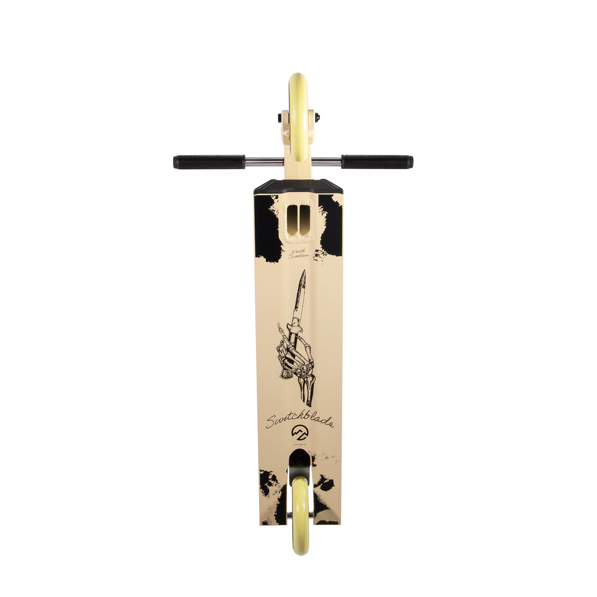 Cette saison, nous avons décidé d'améliorer la Switchblade. Désormais dotée d'un tout nouveau plateau de 5,0" x 20,5" , la Switchblade est encore plus polyvalente . À la fois robuste et légère , et d'une taille idéale, cette trottinette est idéale pour la pratique du street et du park . Outre le plateau de 5,0 ", nous avons également amélioré la fourche avec une fourche Amber de 24 mm, plus robuste . Dotée de roues à âme creuse de 120 mm , d'une compression SCS , de boulons de 6 mm et de plateaux avec inserts , la Switchblade a beaucoup à offrir à ses clients.