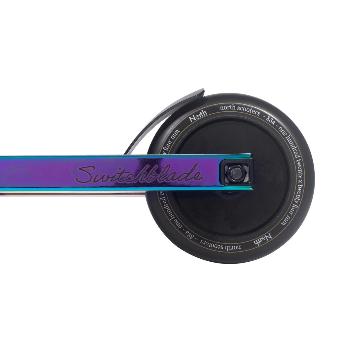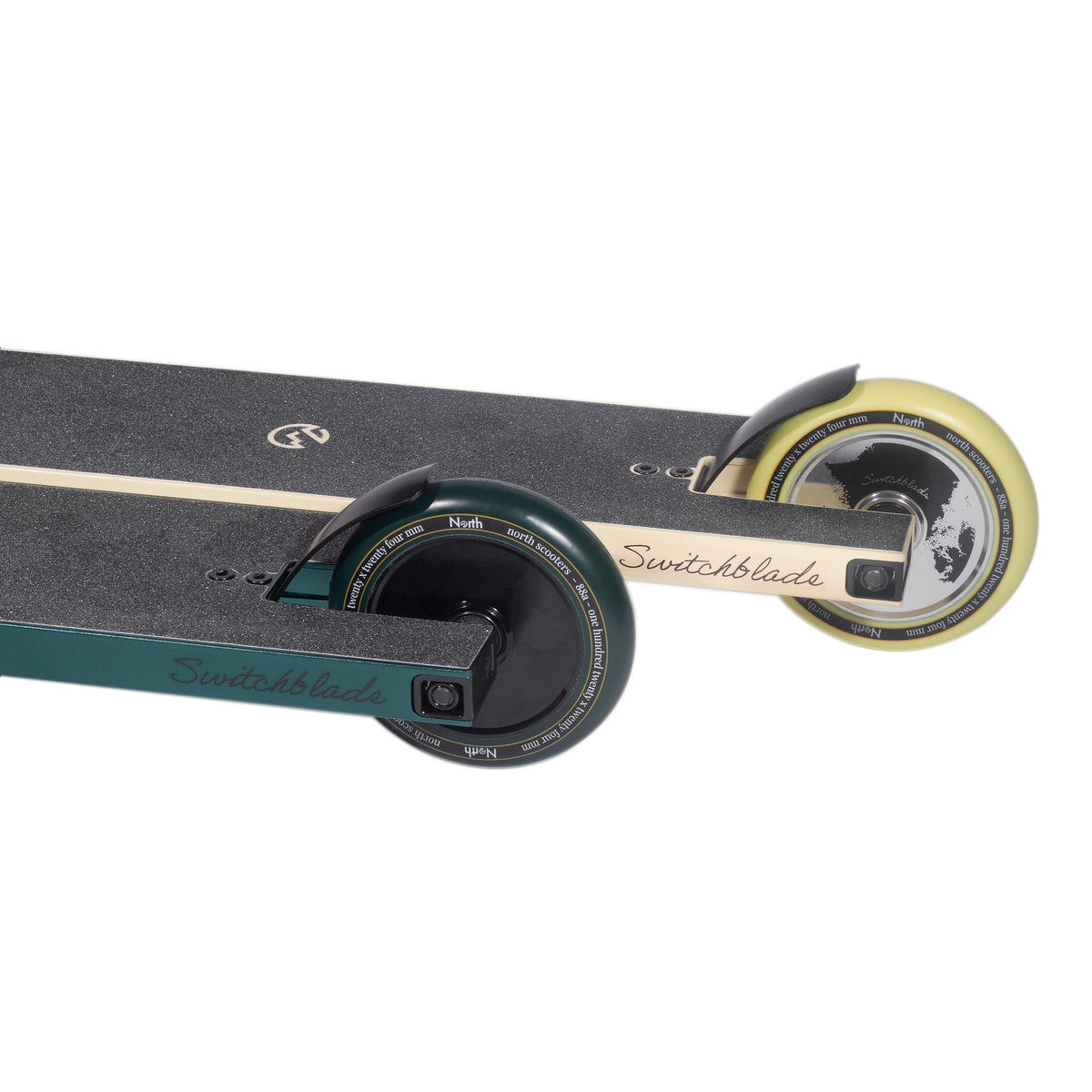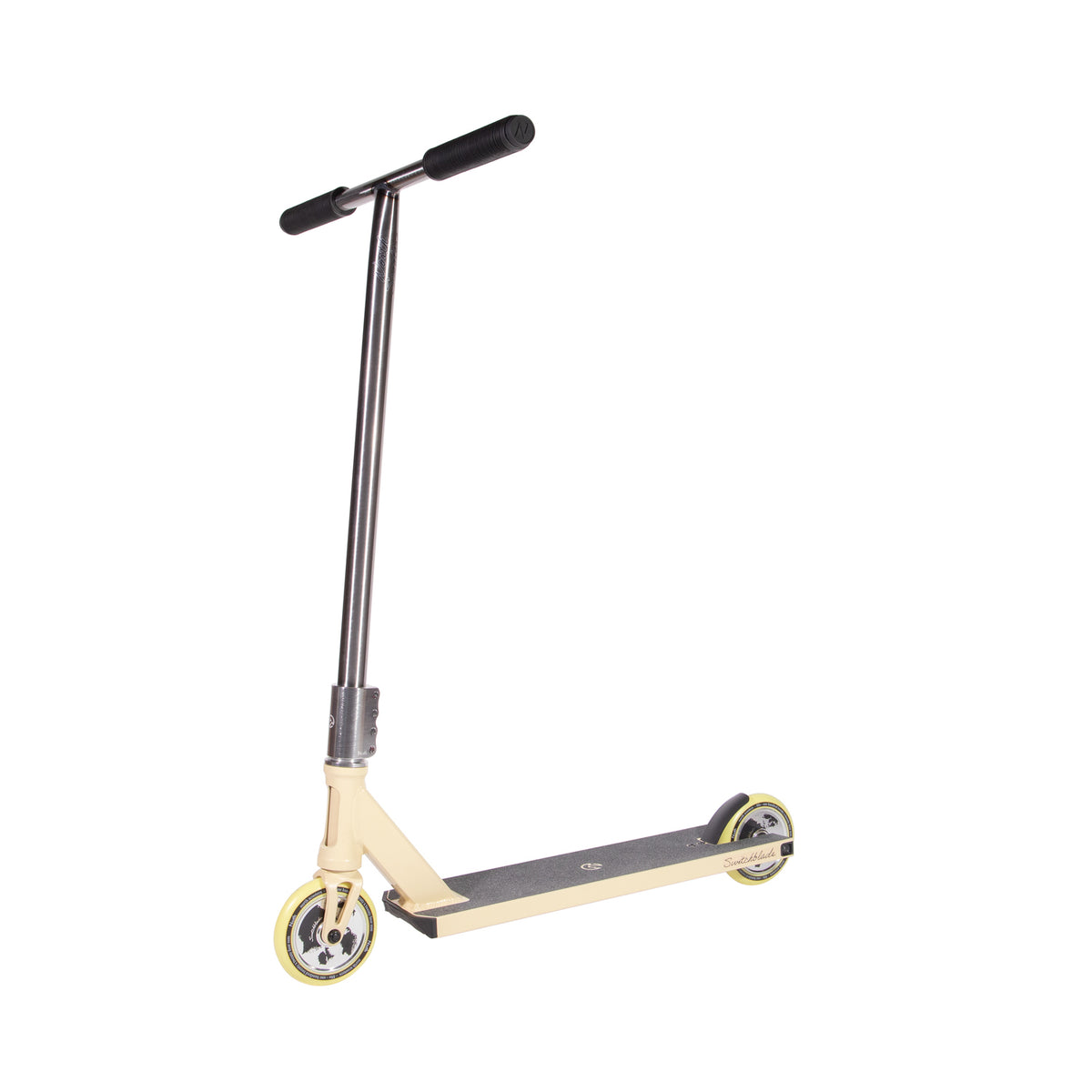 Cette saison, nous avons décidé d'améliorer la Switchblade. Désormais dotée d'un tout nouveau plateau de 5,0" x 20,5" , la Switchblade est encore plus polyvalente . À la fois robuste et légère , et d'une taille idéale, cette trottinette est idéale pour la pratique du street et du park . Outre le plateau de 5,0 ", nous avons également amélioré la fourche avec une fourche Amber de 24 mm, plus robuste . Dotée de roues à âme creuse de 120 mm , d'une compression SCS , de boulons de 6 mm et de plateaux avec inserts , la Switchblade a beaucoup à offrir à ses clients.
