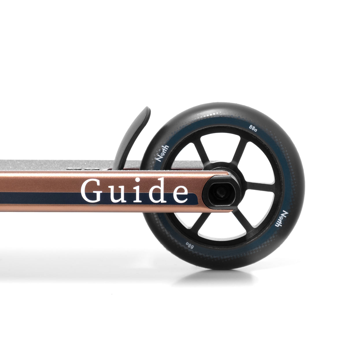 The Guide is our newest complete, and it packs a lot of features for its price point. Coming in at 6.2” wide x 22“ long, the Guide utilizes our popular Unity deck. Paired with T bars, SCS compression and 24mm Signal wheels, this complete has both the components and size to accommodate even the most seasoned riders. While the guide is designed with street riding in mind, it is also a great scooter for any rider looking for a larger setup, regardless of their riding style.
